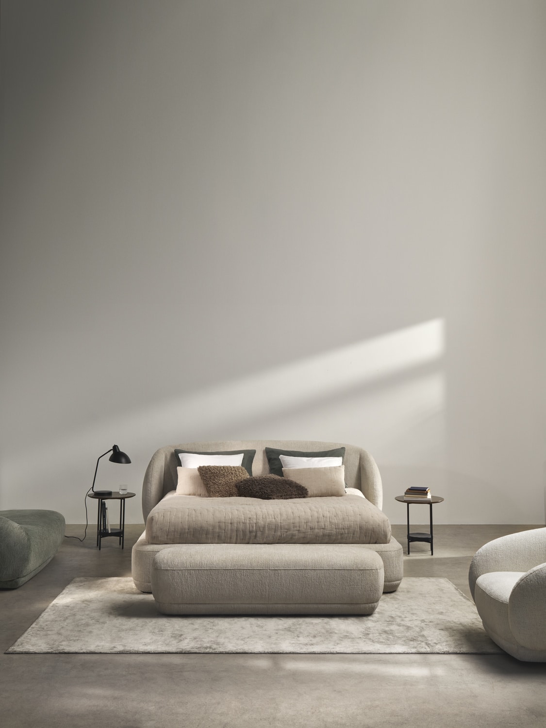 Podczas gdy w kolekcji Element chodzi o zdolność adaptacji i dostosowania, seria Bolzano to kwintesencja zmysłowego spokoju. Pluszowa, zaokrąglona i zapraszająca kolekcja Bolzano uosabia trend "Cosy Cocoon" coraz powszechniejszy we wnętrzach. Dzięki 360-stopniowemu wyglądowi, miękkiej tapicerce i uspokajającym, rzeźbiarskim kształtom, Bolzano przekształca każdą sypialnię w przytulne gniazdko.