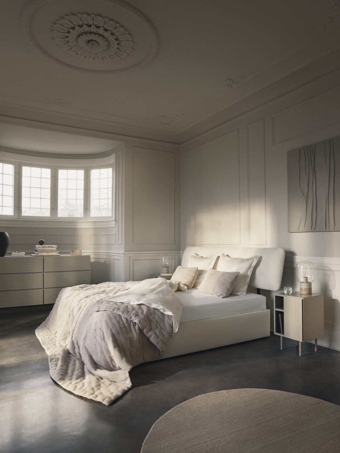 We obu kolekcjach BoConcept skupił się na zmieniającej się roli sypialni, w której zacierają się granice między snem, pracą i odosobnieniem. Zdefiniowane układy pomagają wydzielić wyraźne strefy, a wielofunkcyjne meble wspierają przejście z nocy w dzień. Wolnostojące meble do przechowywania i nastrojowe oświetlenie umożliwiają cięższą pracę na każdym metrze kwadratowym, zwłaszcza w domach, w których sypialnie mogą również służyć jako gabinety i miejsca do medytacji.