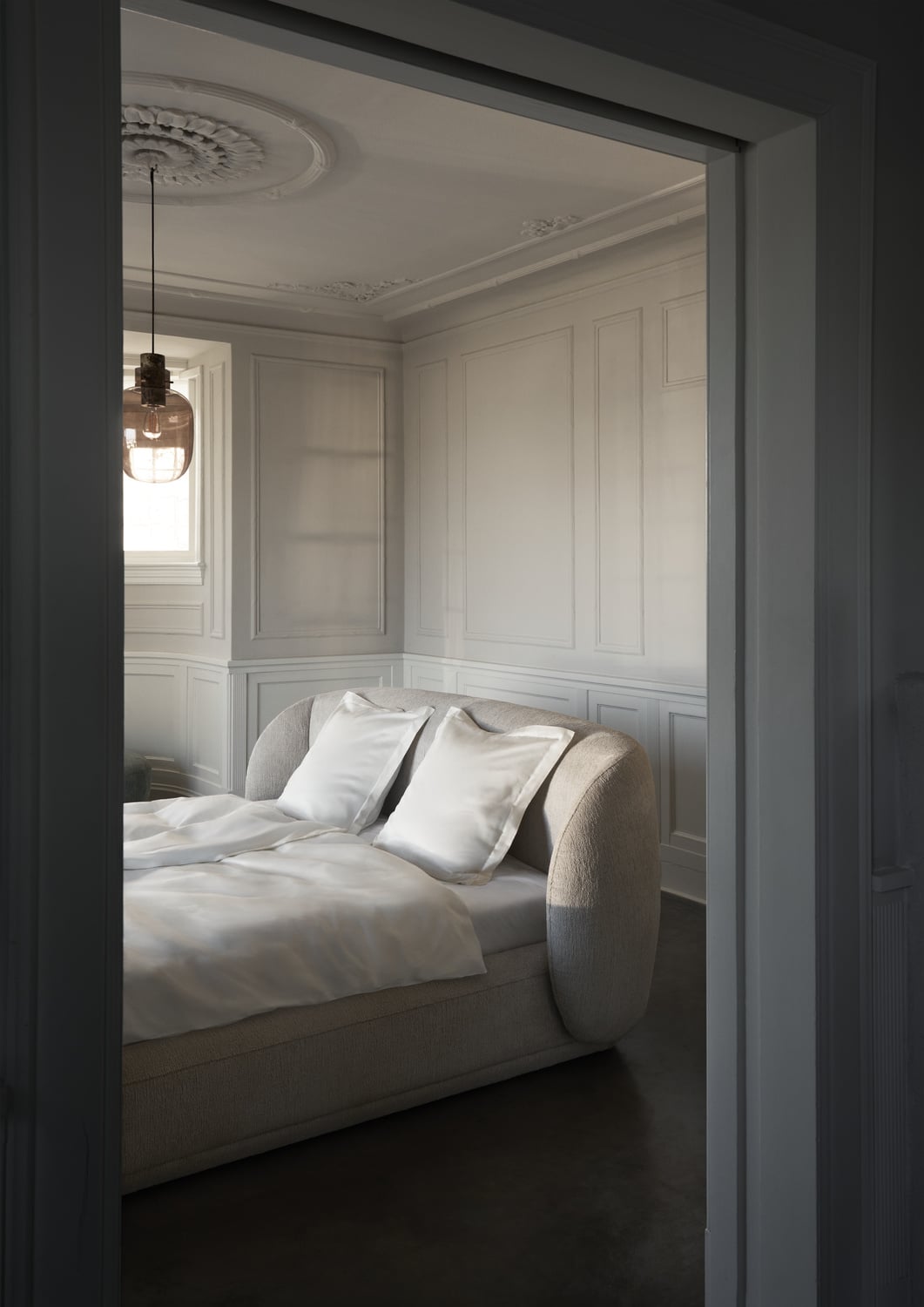 "W czasach cyfrowego przeciążenia projektowanie sypialni musi przesunąć nas z zaawansowanej technologii na zaawansowany dotyk" - wyjaśnia Georgsen. "Krągłości wprowadzają poczucie spokoju, a organiczne kształty są niezbędne, aby meble nadawały się do codziennego życia i były kojące sensorycznie".