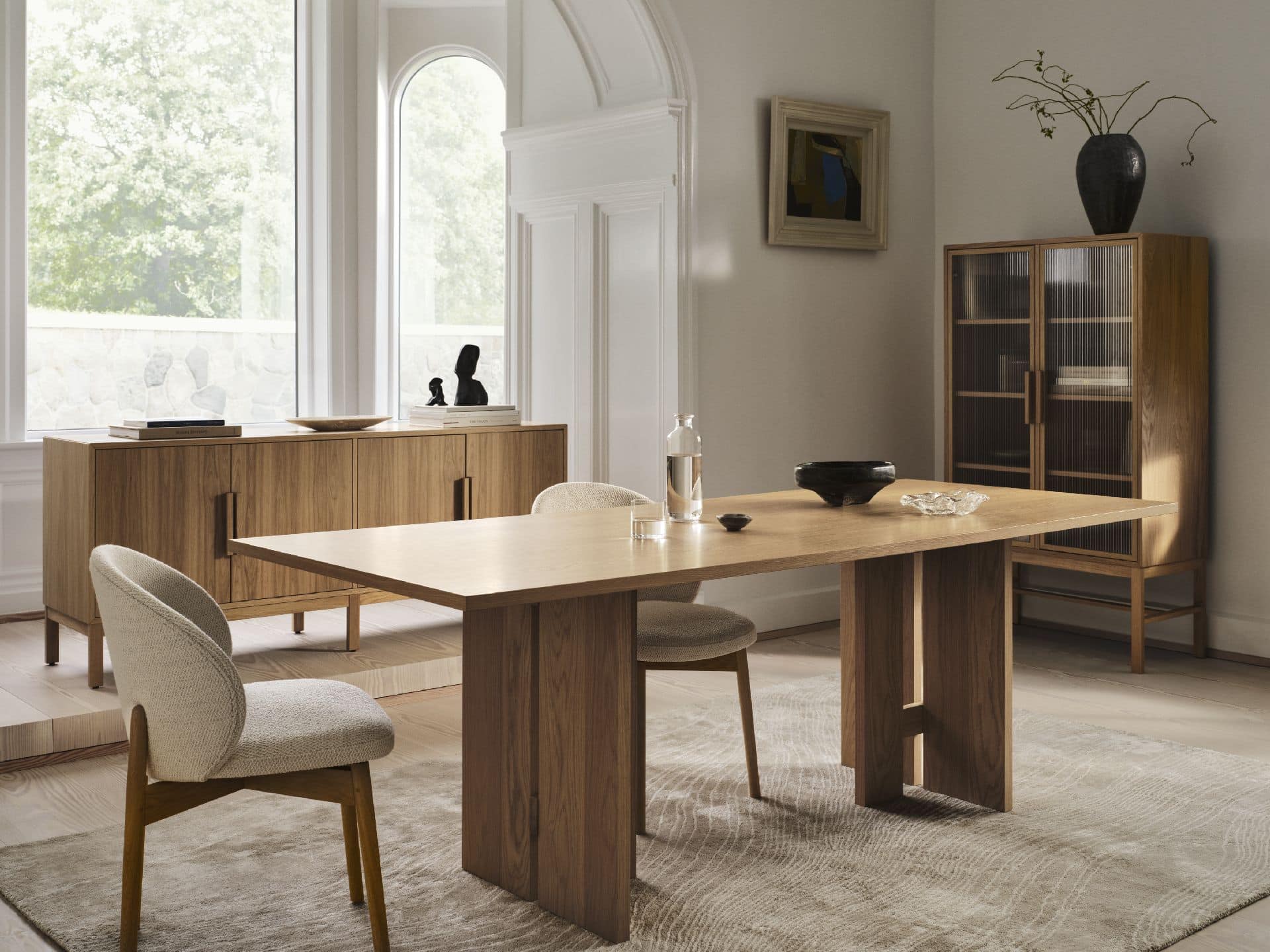 Doświadczenie architektoniczne atelier axo wyraża się w rzeźbiarskich proporcjach kolekcji, od elegancko zwężanych nóg stołu po czystą konstrukcję mebli do przechowywania.