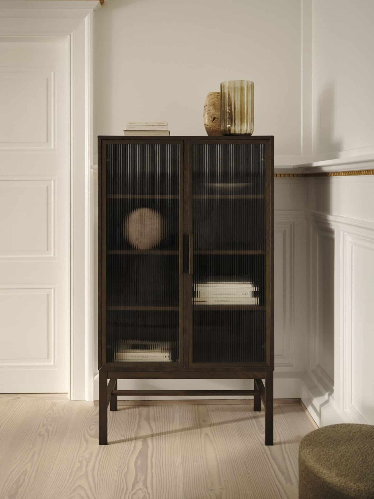 Seria Axo została zaprojektowana jako holistyczne środowisko gastronomiczne. Obok stołów kolekcja obejmuje bufet oraz witrynę z przeszklonymi frontami - uniwersalne elementy, które płynnie przechodzą między jadalnią a przestrzenią dzienną. Falowane, szronione szkło witryny wprowadza bardzo ekspresyjny detal.