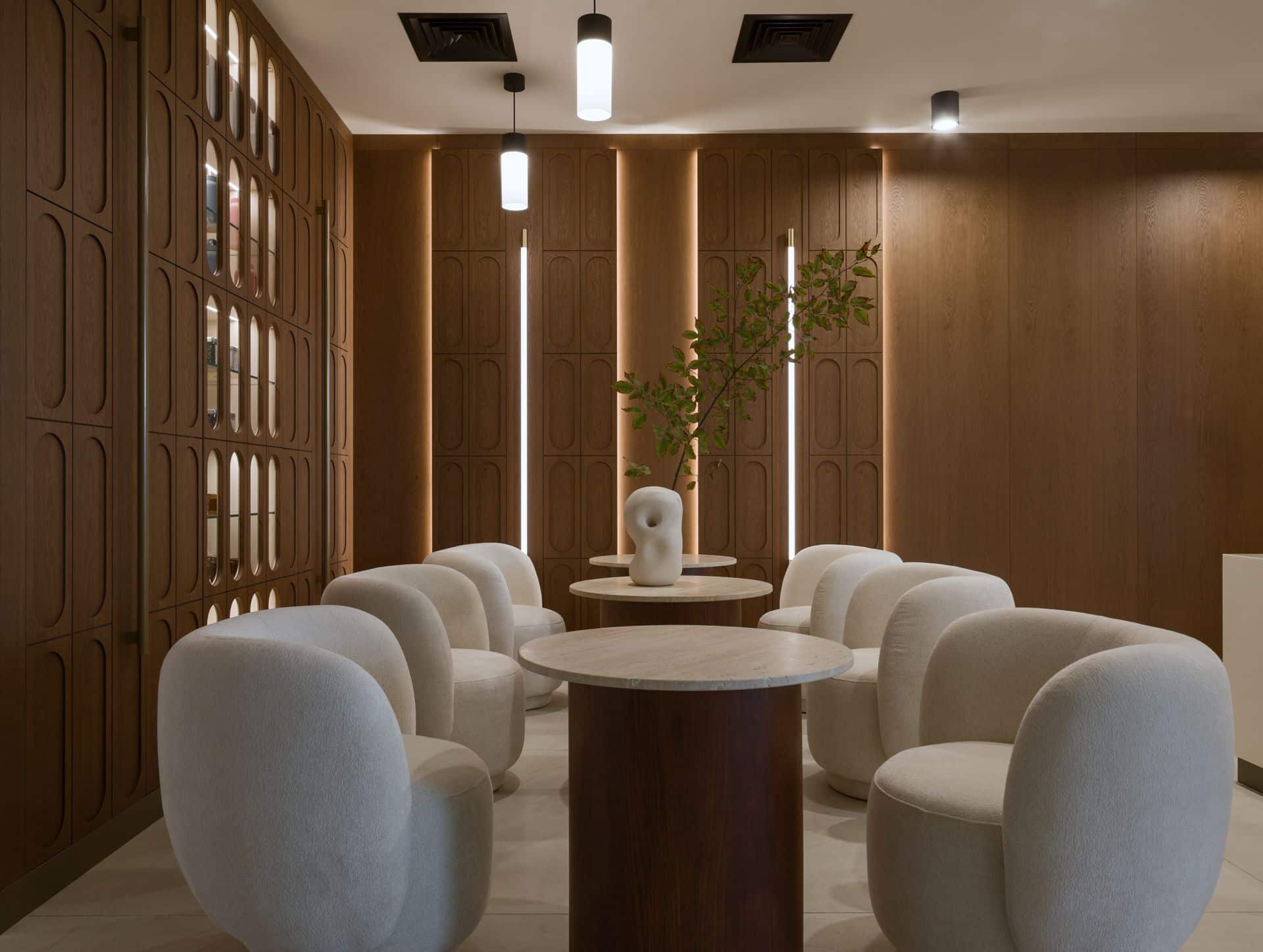Nowe CHANGE Studio zajmuje ponad 900 m2 i rozwija filozofię projektowania zapoczątkowaną w Elektrowni Powiśle. Wnętrze w budynku Towarowa22 jest organiczną interpretacją przestrzeni fitness, kreowaną w duchu japońskiego wabi-sabi, z elementami inspirowanymi historią miejsca, czyli dawnego Domu Słowa Polskiego. Naturalne drewno, mikrocement, len, delikatne oświetlenie i starannie dobrana paleta barw składają się na spójny język wizualny, który podkreśla koncepcję, nie przytłaczając jej. Każda ze stref, od jogi i pilatesu po trening funkcjonalny i relaks, została zaprojektowana z myślą o człowieku i jego rytmie dnia. Poza strefą treningową znajduje się tu SPA z sauną i cold plunge, pokój do masażu i fizjoterapii oraz fit bar z menu opartym na zdrowych składnikach. Przemyślana ergonomia, miękkie akustycznie materiały i zmysłowa strefa Lounge mają w zamyśle sprzyjać dbałości o dobrostan i regeneracji.