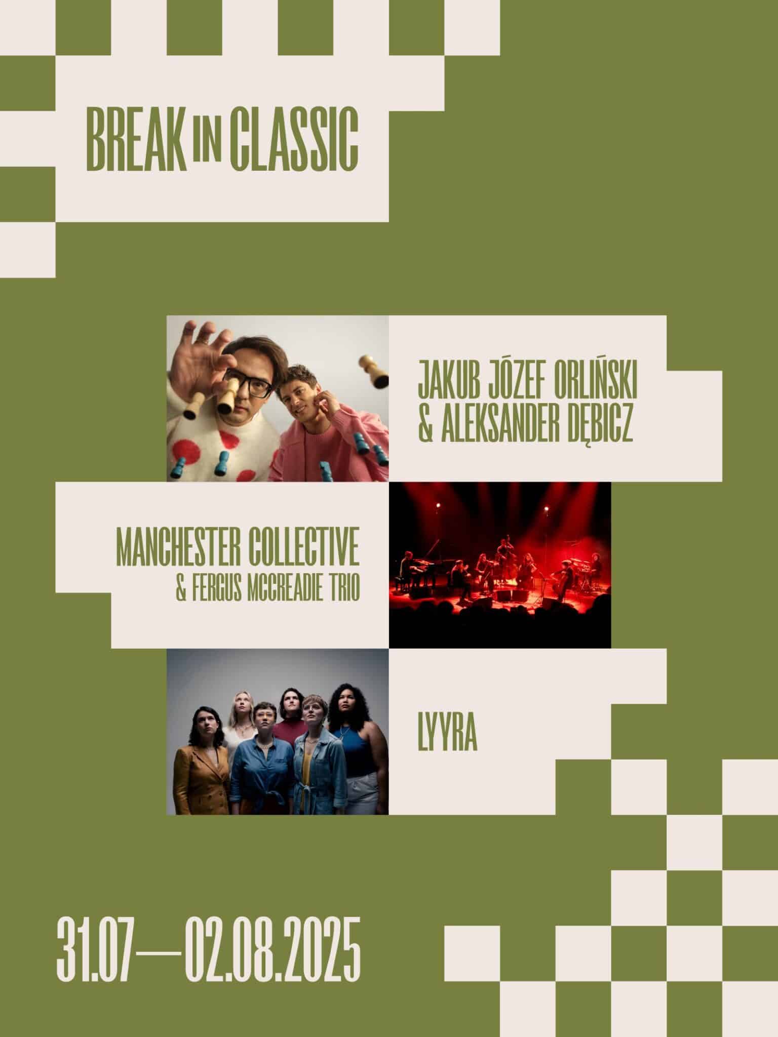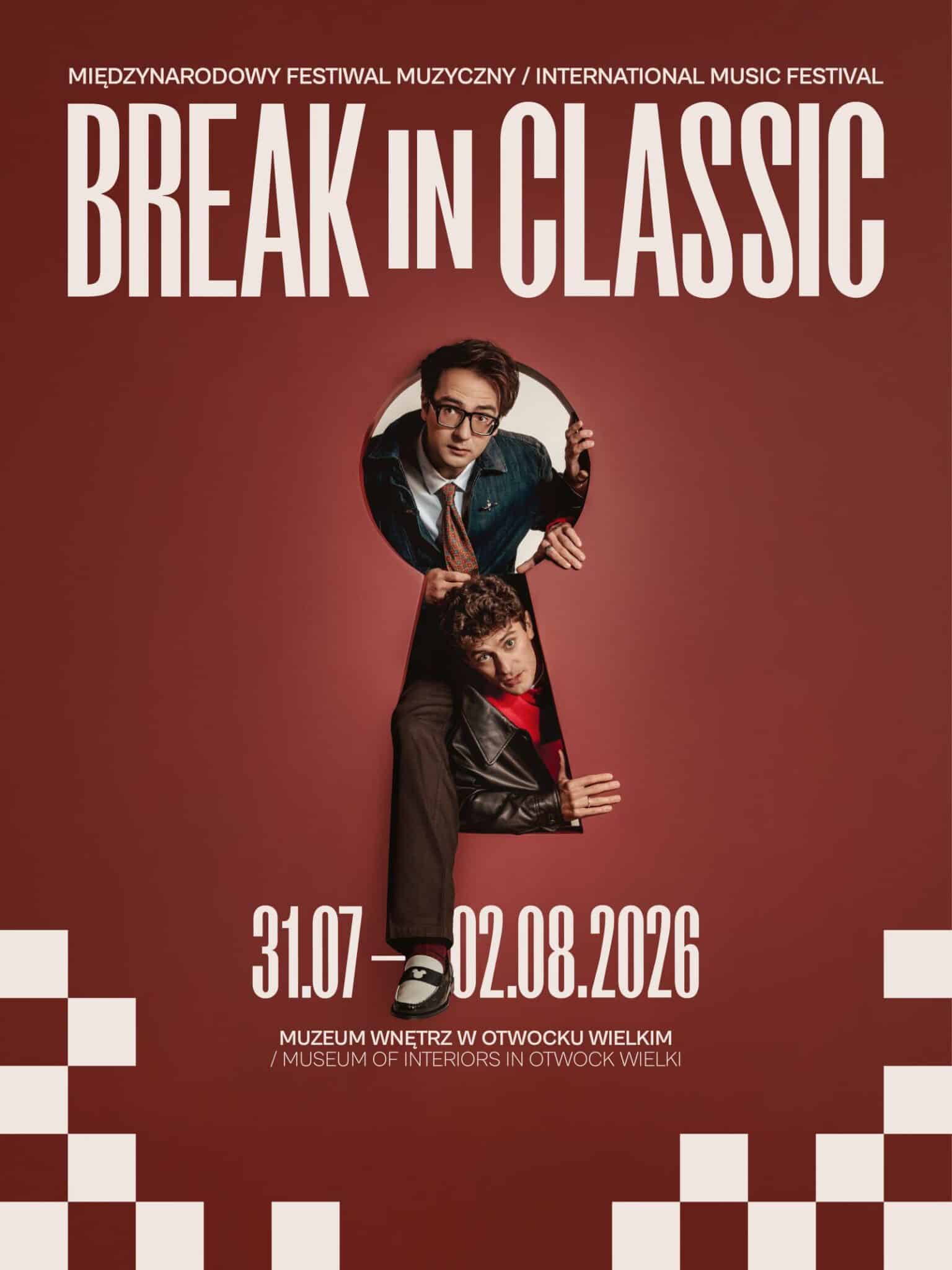 Druga edycja festiwalu, której Dyrektorami Artystycznymi niezmiennie pozostają Jakub Józef Orliński i Aleksander Dębicz, kontynuować będzie misję przełamywania schematów i łączenia tradycji z nowoczesnością. Break in Classic pozostaje przestrzenią, w której muzyka klasyczna spotyka świeże formaty, współczesną estetykę i nieoczywiste skojarzenia artystyczne - w otoczeniu natury i wyjątkowej architektury zabytkowego kompleksu w Muzeum Wnętrz w Otwocku Wielkim, Oddziale Muzeum Narodowego w Warszawie.