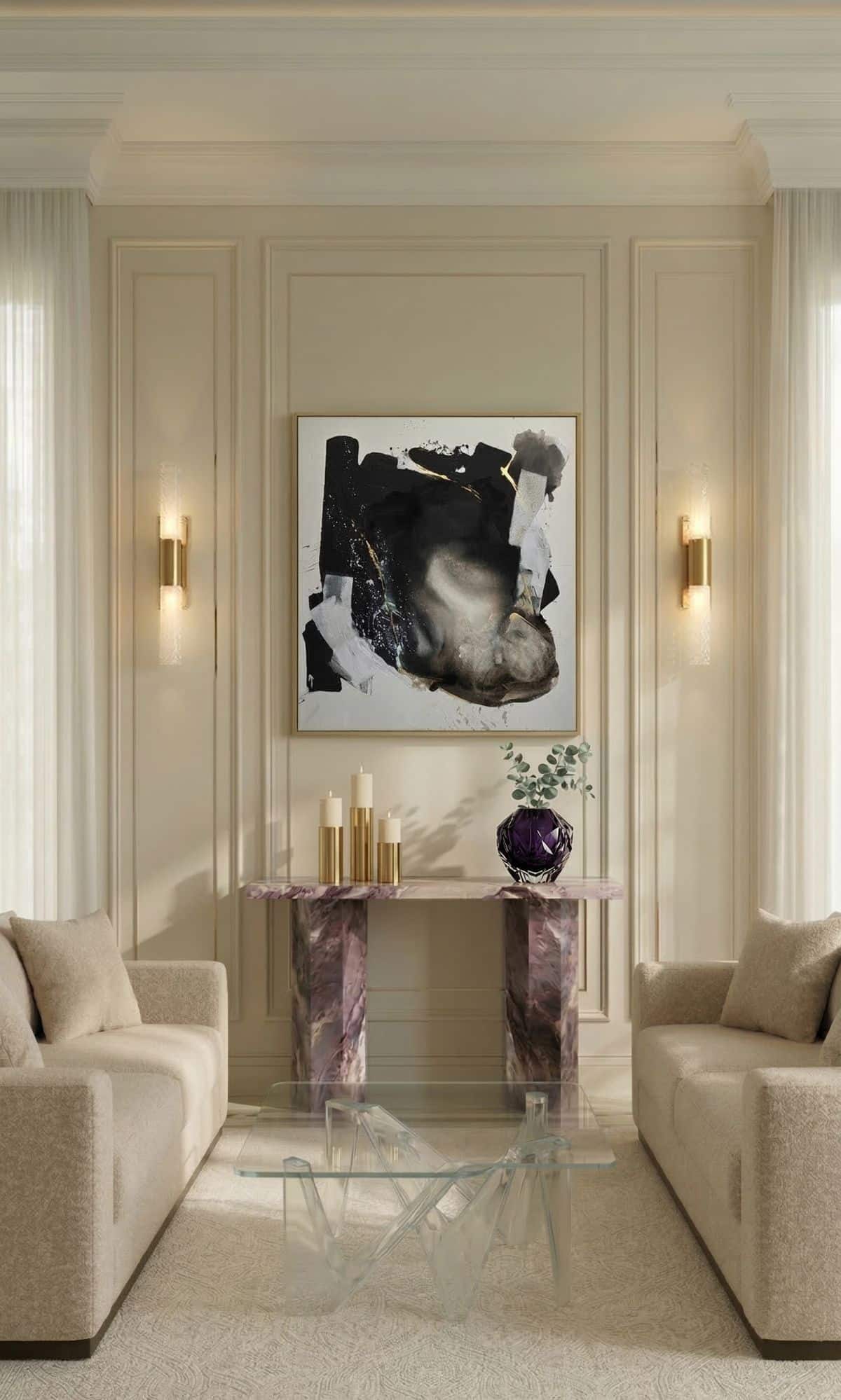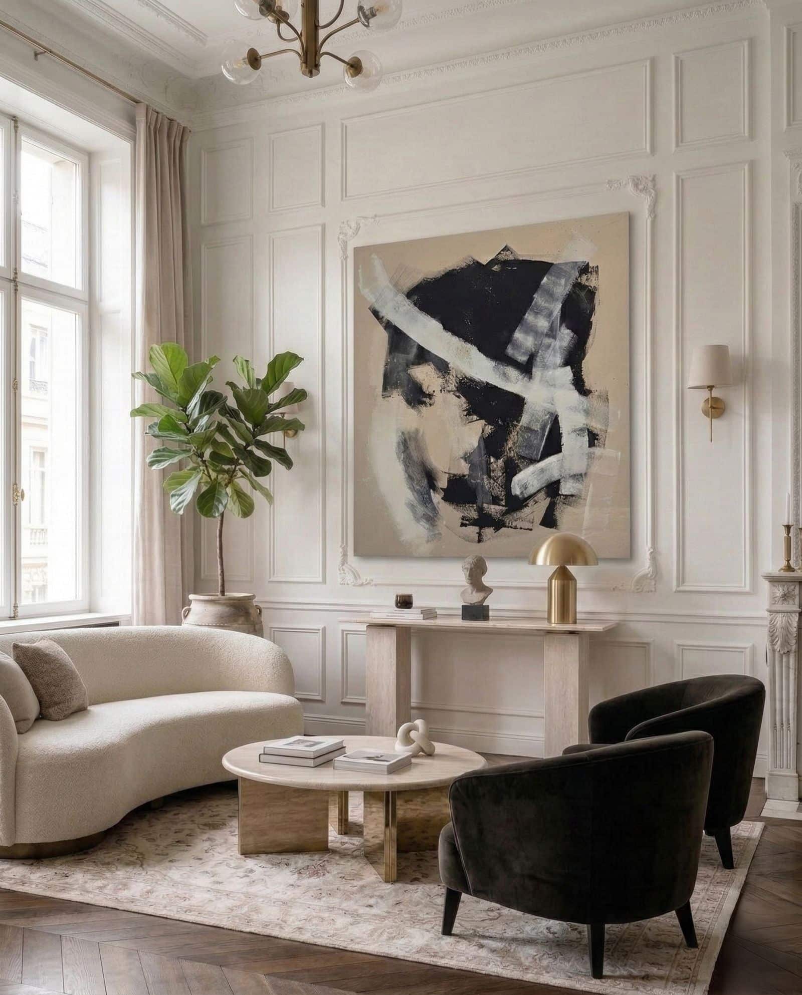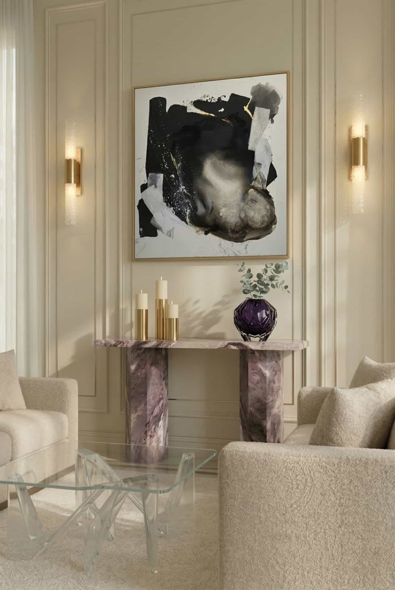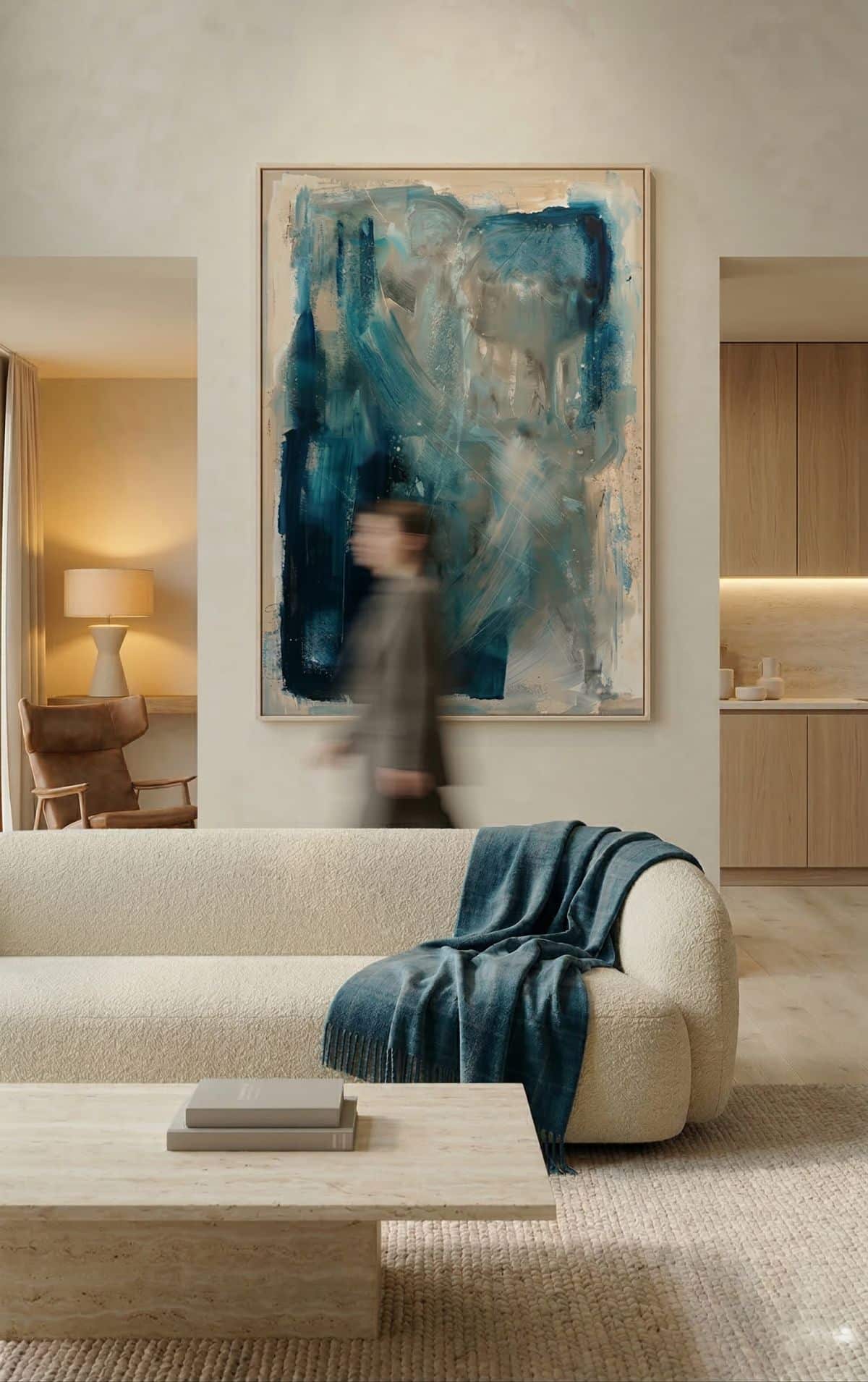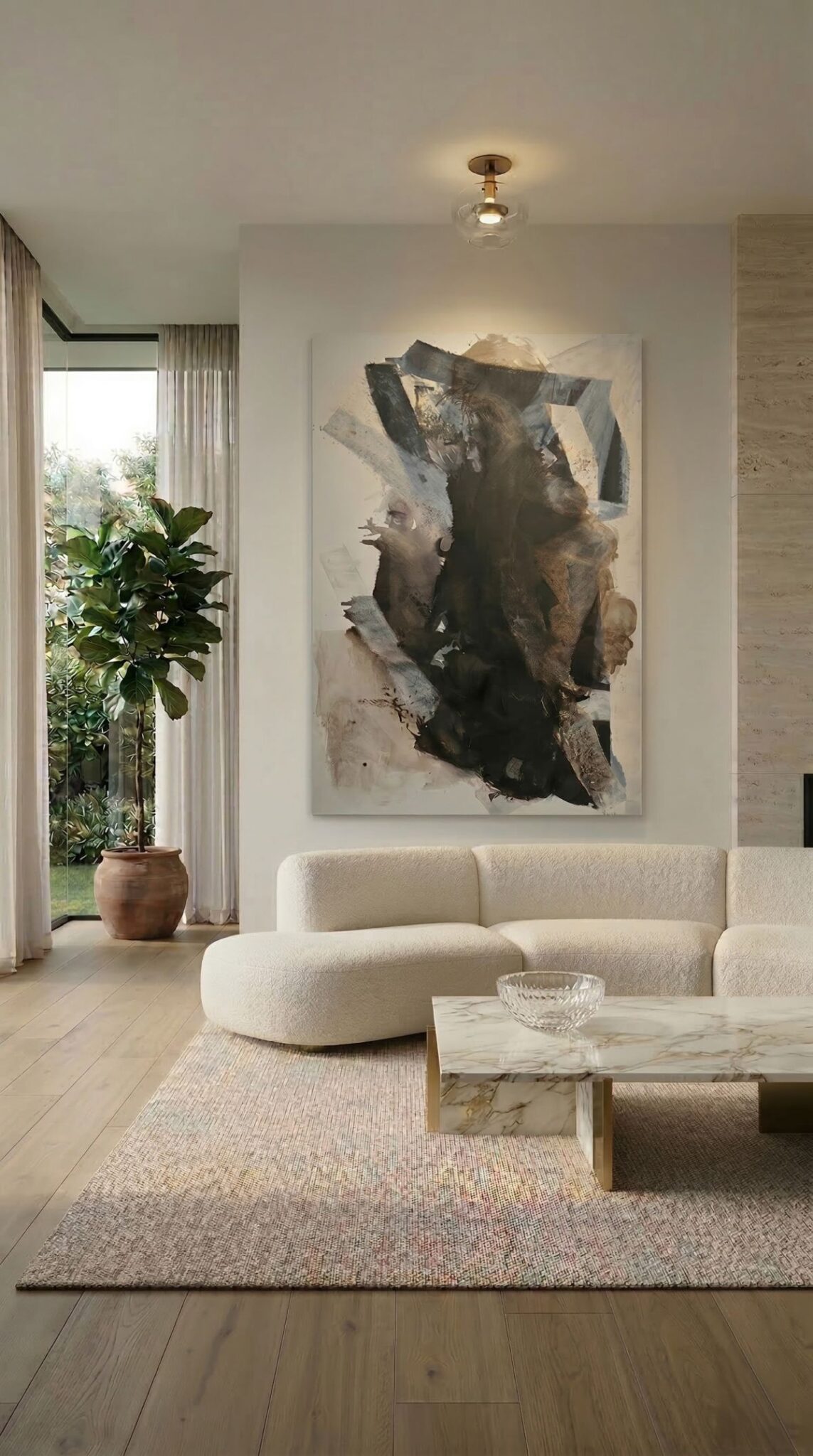 Twórczość Magdaleny Lenartowicz od lat rozwija się na styku sztuki i designu. Jej prace mogą współtworzyć charakter miejsca, regulować emocje i budować poczucie harmonii. Dlatego obrazy z kolekcji "Między światłem a ziemią" doskonale odnajdują się w nowoczesnych, minimalistycznych wnętrzach, ale także w przestrzeniach inspirowanych naturą, takich jak japandi, quiet luxury czy contemporary. Sprawdzą się zarówno w prywatnych domach, jak i w eleganckich biurach czy hotelach. Cykl składa się z dziesięciu prac w dużych formatach; od 100 × 100 cm do 180 × 160 cm - powstałych na naturalnym, surowym lnie.