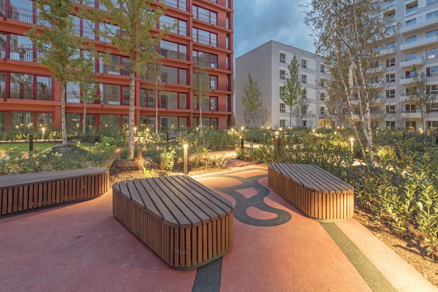 "Już na etapie projektowania wiedzieliśmy, że głównym celem będzie zachowanie dotychczasowego starodrzewia, na które składa się ponad 130 drzew o wysokości co najmniej kilkunastu metrów. To naturalna, zielona bariera między osiedlem a ruchliwą ulicą. Sztuką było sprawić, by nowe tereny zielone cieszyły mieszkańców wizualnie, ale także stanowiły miejsce codziennych spotkań, spacerów i aktywnego wypoczynku." - wyjaśnia Jakub Heciak, Partner w pracowni BBGK Architekci
