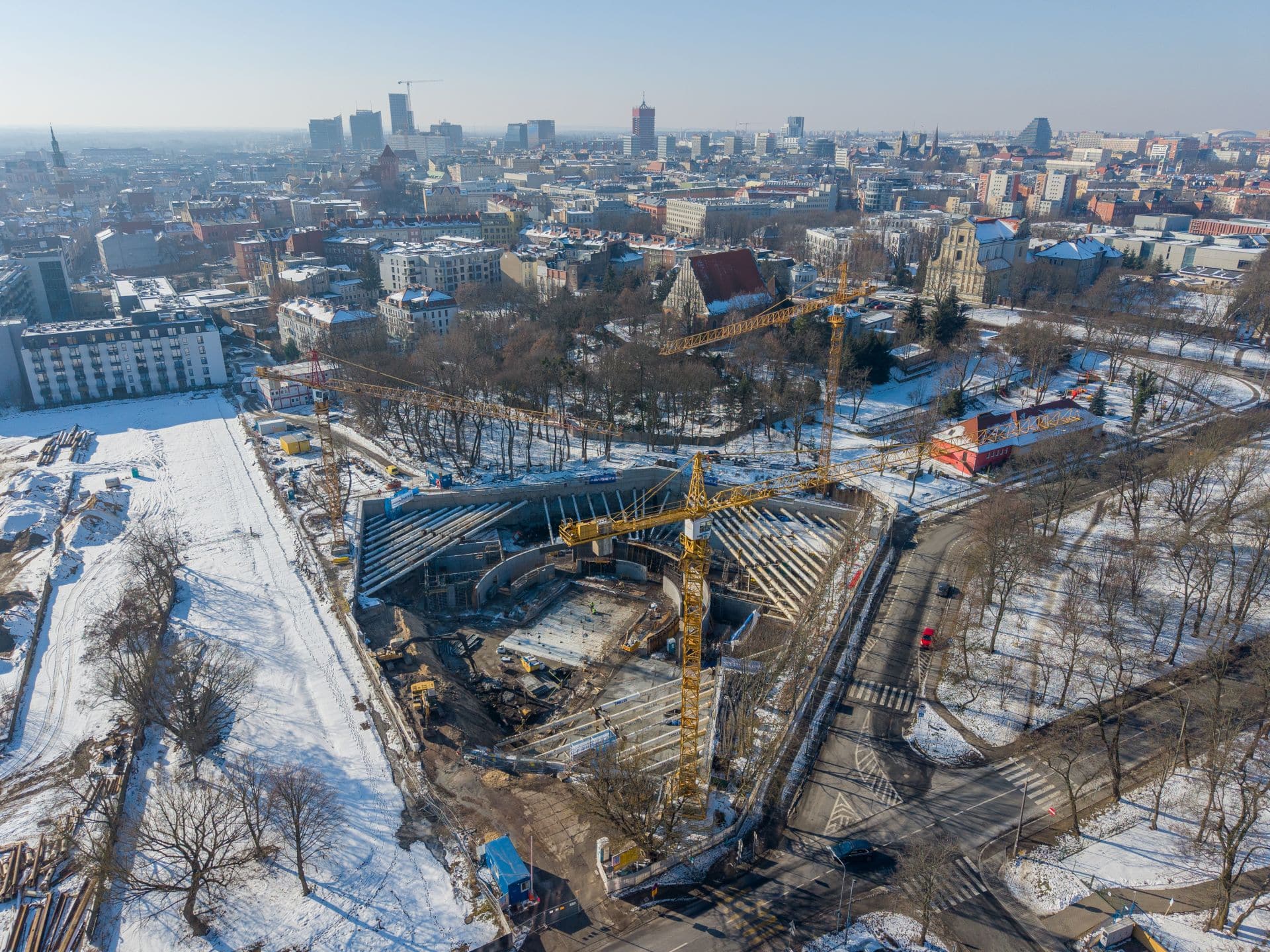 Prace na placu budowy nowej siedziby Muzeum Powstania Wielkopolskiego 1918-1919 w Poznaniu rozpoczęły się przed ponad rokiem, 16 lutego 2024 r. - w 105 rocznicę podpisania rozejmu w Trewirze, będącego symboliczną datą uznania zwycięstwa sił powstańczych. Dotychczas intensywne prace budowlane toczyły się poniżej poziomu gruntu, gdzie powstawała okazałych rozmiarów kondygnacja podziemna. Pomieści ona "serce muzeum" - przestrzeń ekspozycyjną o powierzchni ponad 3 tys. m2, miejsce wystawy stałej upamiętniającej patriotyczny zryw i wiekopomne zwycięstwo Wielkopolan. Ponad kolistą, rozrysowaną na planie rotundy przestrzenią centralną wystawy wznosić się będzie spektakularna kopuła o rozpiętości 30 m. Podkreśli ona szczególną rangę miejsca.