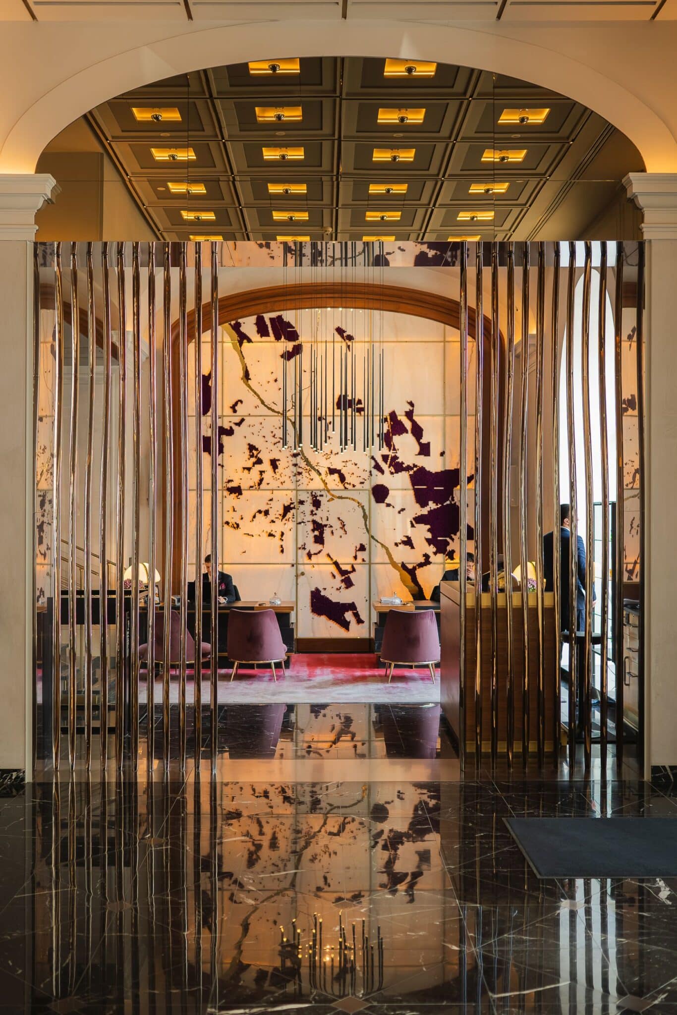 Podczas spaceru architekci mieli także okazję zajrzeć do Apartamentu Królewskiego, czyli historycznej Sali Pompejańskiej dawnego Hotelu Europejskiego, oraz kameralnego Humidoru; salonu whisky i cygar, w którym dyskretna elegancja tworzyła świetną atmosferę do rozmów. Właśnie ten rodzaj luksusu, wyważony i w pełni przemyślany, pokazał, dlaczego międzynarodowi goście tak chętnie wracają do Raffles.