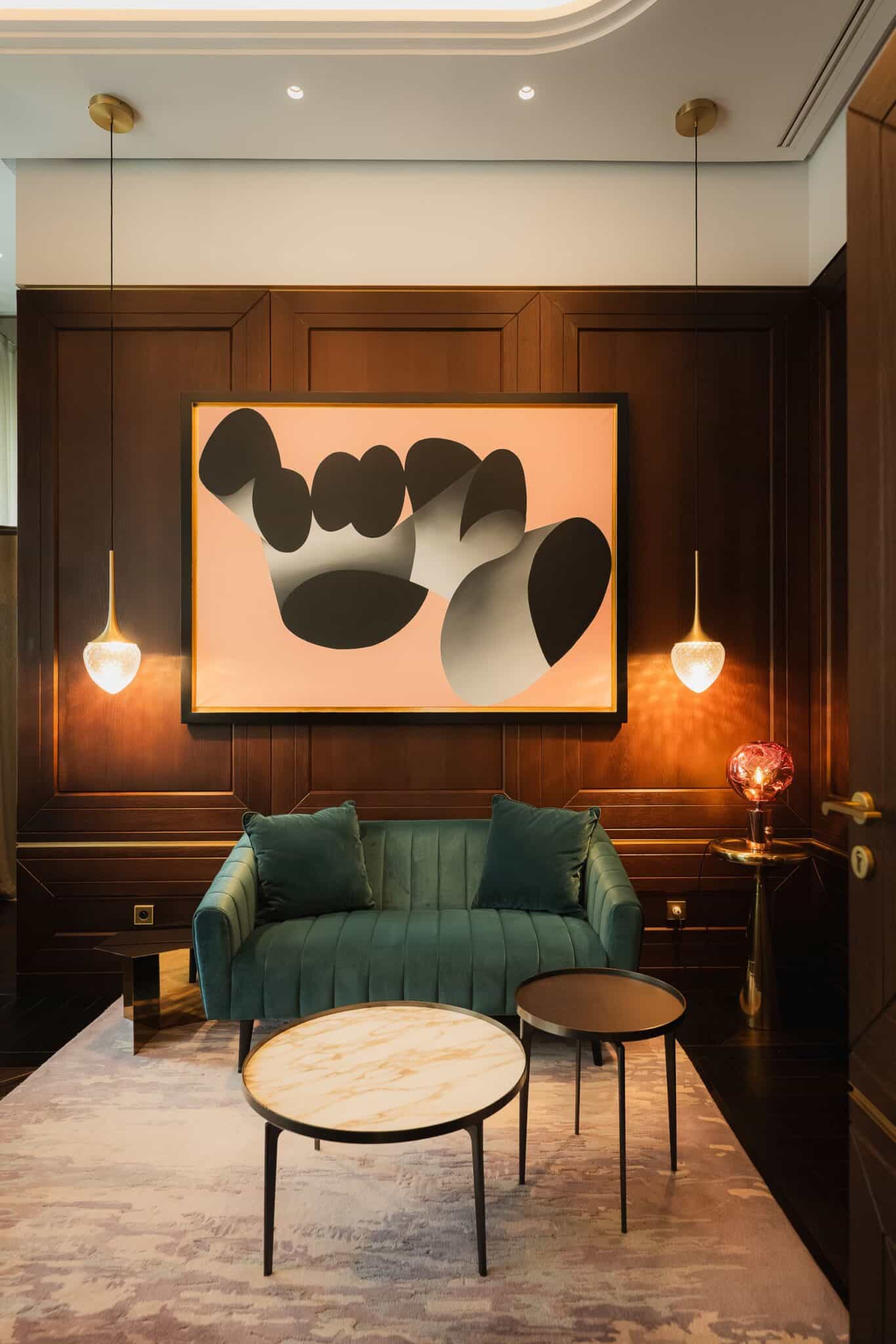 W Raffles znajduje się około 500 obiektów sztuki XX i XXI wieku, co czyni tę kolekcję jednym z największych prywatnych zbiorów, dostępnych publicznie w Polsce. Obrazy, fotografie, plakaty, rzeźby i instalacje wielu wybitnych artystów nie są tu jedynie dekoracyjnym tłem, ale świadomą komponentą doświadczania przestrzeni. Pierwszym dziełem, które przyciągnęło uwagę, była szklana rzeźba Doroty Buczkowskiej. Ambasadorzy Kontakt-Simon podziwiali także stalową formę TAJDO Oskara Zięty w lobby i świetlną instalację "Granice" Włodzimierza Jana Zakrzewskiego. Spacer kontynuowano z twórczością Leona Tarasewicza i Wilhelma Sasnala, a przechodząc przez kolejne korytarze, architekci odkrywali ukryte detale - mozaikę "Porwanie Europy" Krystyny Kozłowskiej czy kolekcję porcelany i szkła z lat 60., 70. i 80., która przywołuje ducha minionych dekad Warszawy. Nad powstaniem tej kolekcji czuwały Anda Rottenberg, kuratorka i krytyczka sztuki współczesnej, oraz Barbara Piwowarska, doświadczona ekspertka w zakresie kolekcji prywatnych. Wybrane przez nie prace wnikają w codzienne przestrzenie hotelu i pozwalają poczuć, że bycie blisko sztuki towarzyszy gościom hotelu na co dzień.