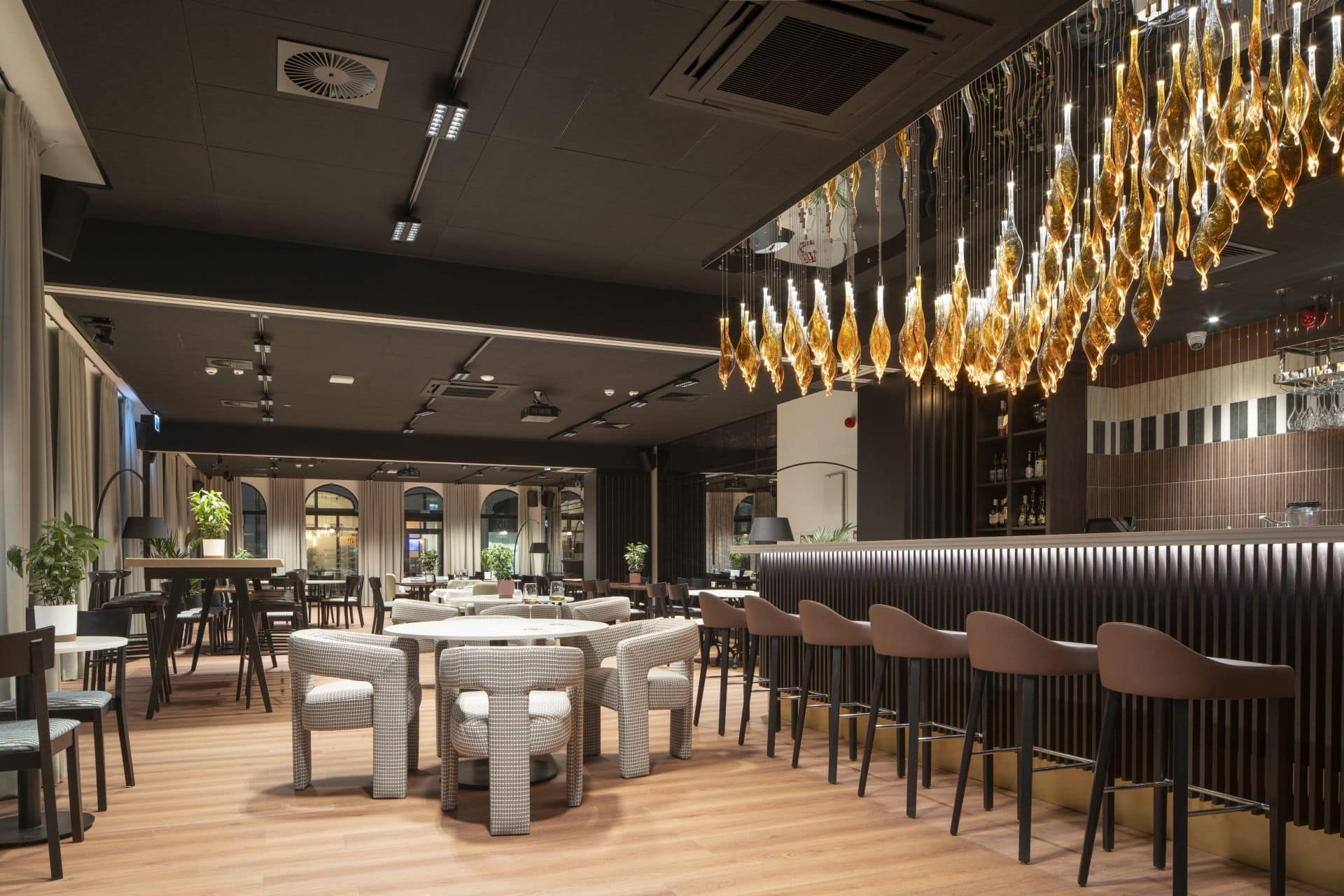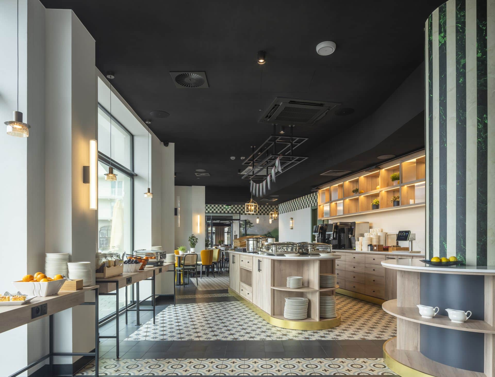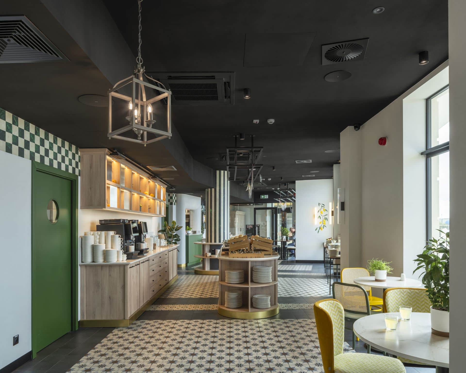 Architekci Tremend poproszeni zostali o zaprojektowanie wnętrz, które oddadzą domową atmosferę rodzinnej włoskiej restauracji. Inspirację tę najsilniej oddają wnętrza części restauracji, która w godzinach porannych służy jako miejsce śniadań, w ciągu dnia zaś przekształca się w restaurację a'la carte. Stylistyka tej sfery zaprojektowana została w duchu włoskiej trattorii. W jasnych, pełnych światła wnętrzach panują ciepłe, naturalne materiały, roślinność oraz elementy dekoracyjne inspirowane włoskimi domami. W zestawieniu ze stylowymi, tapicerowanymi sofami i krzesłami, wnętrze tworzy przytulną atmosferę, która zaprasza do środka, zachęcając do niespiesznego celebrowania chwili.
