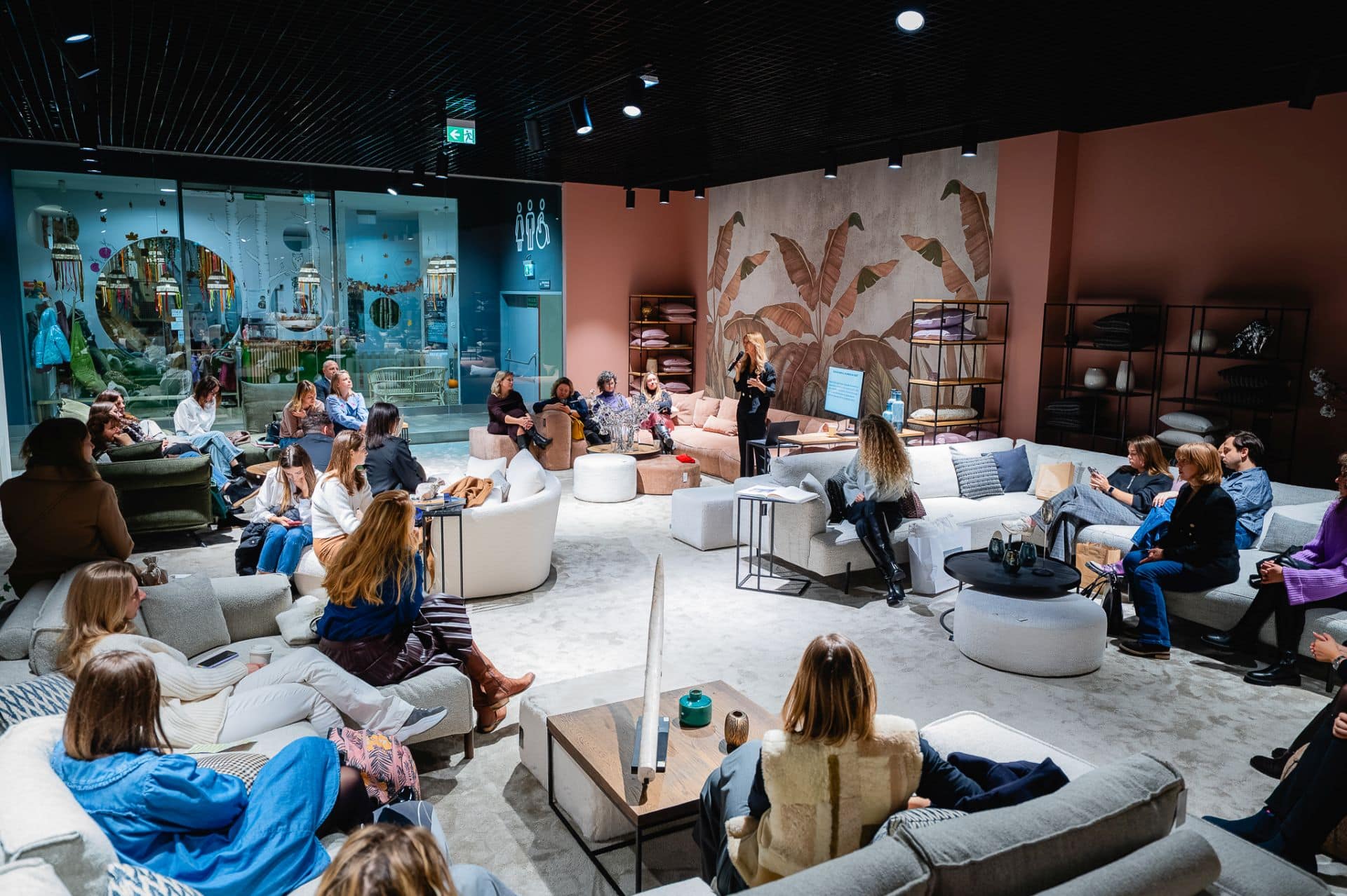 Po południu program jeszcze bardziej nabrał tempa. Olga Kisiel-Konopka z OKK PR! opowiadała o budowaniu marki architekta i pracy z mediami, Decoroom wraz z Rubio Monocoat wprowadzili uczestników w sztukę tworzenia nastrojowych moodboardów, a Ewa Mierzejewska przekonywała, że sztuka może być nie tylko dodatkiem, lecz integralną częścią dobrze zaprojektowanego wnętrza. Dużym zainteresowaniem cieszyły się także zajęcia poświęcone stylizacji wnętrz do sesji zdjęciowych prowadzone przez Łukasza Siwca oraz warsztaty na temat wykorzystania narzędzi AI.