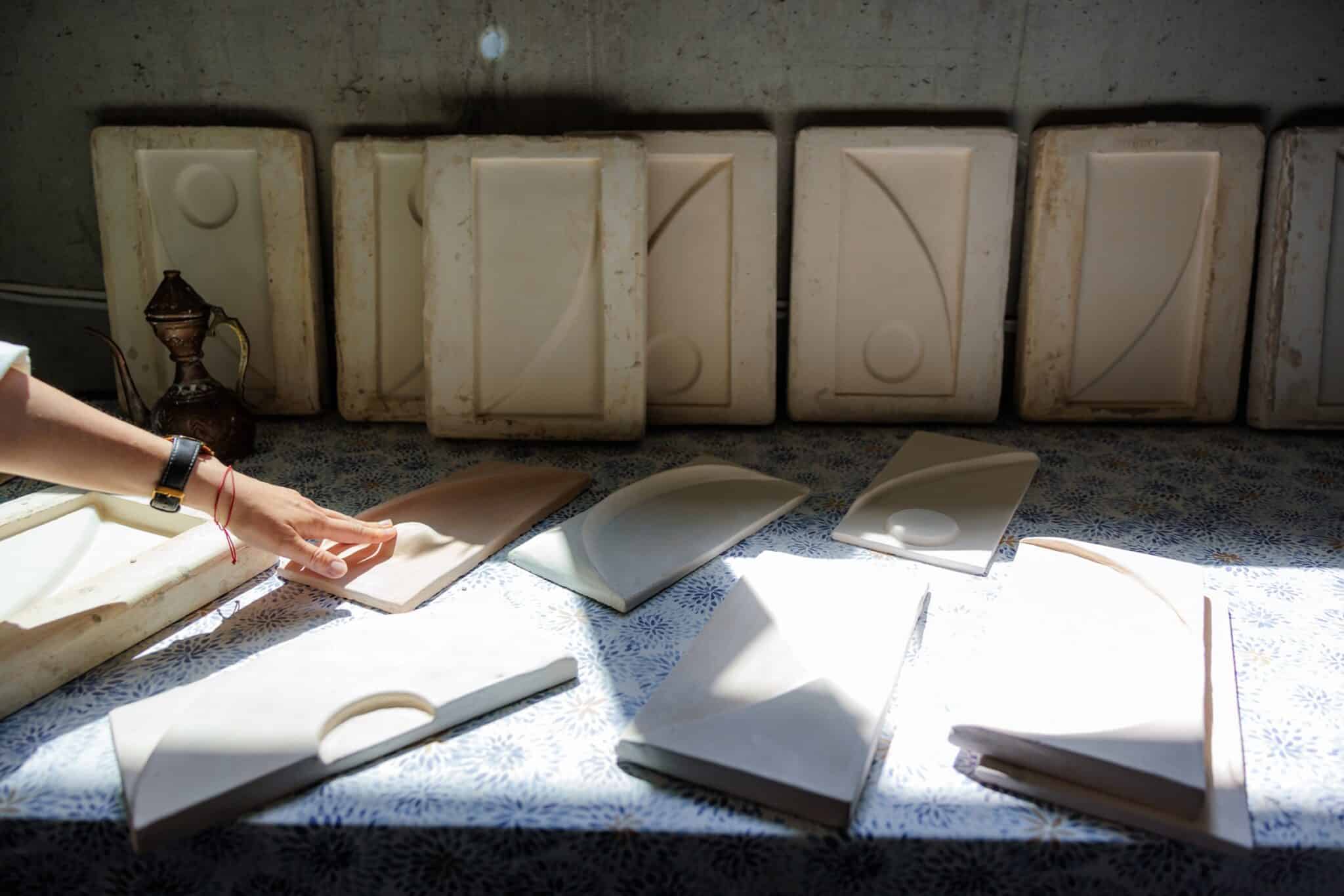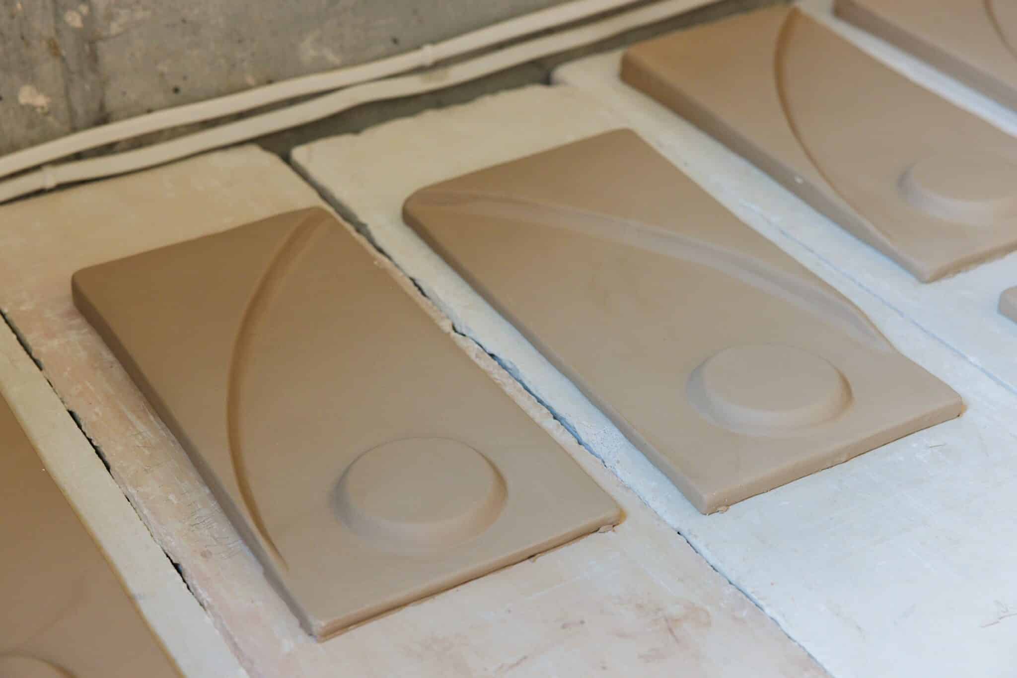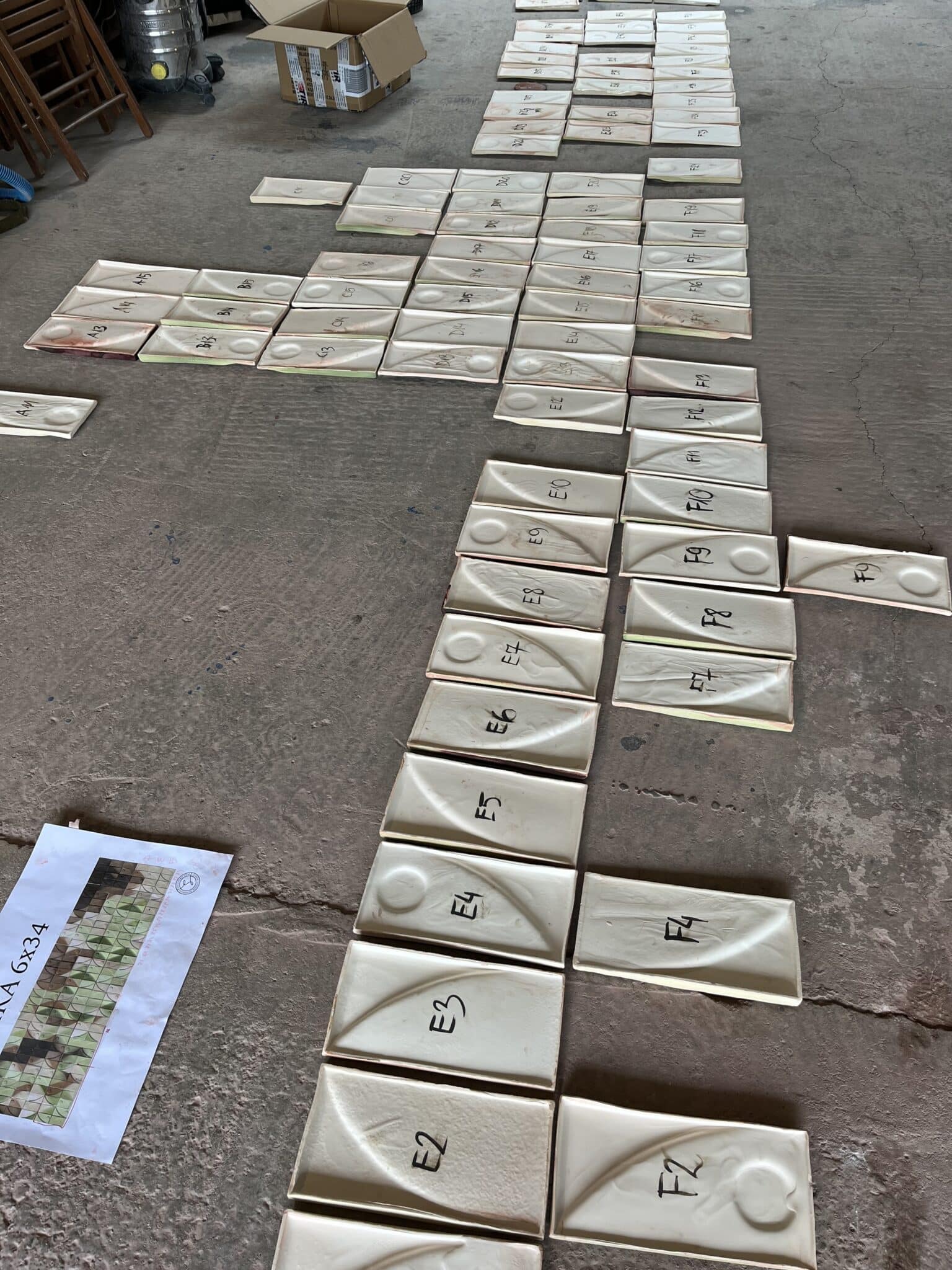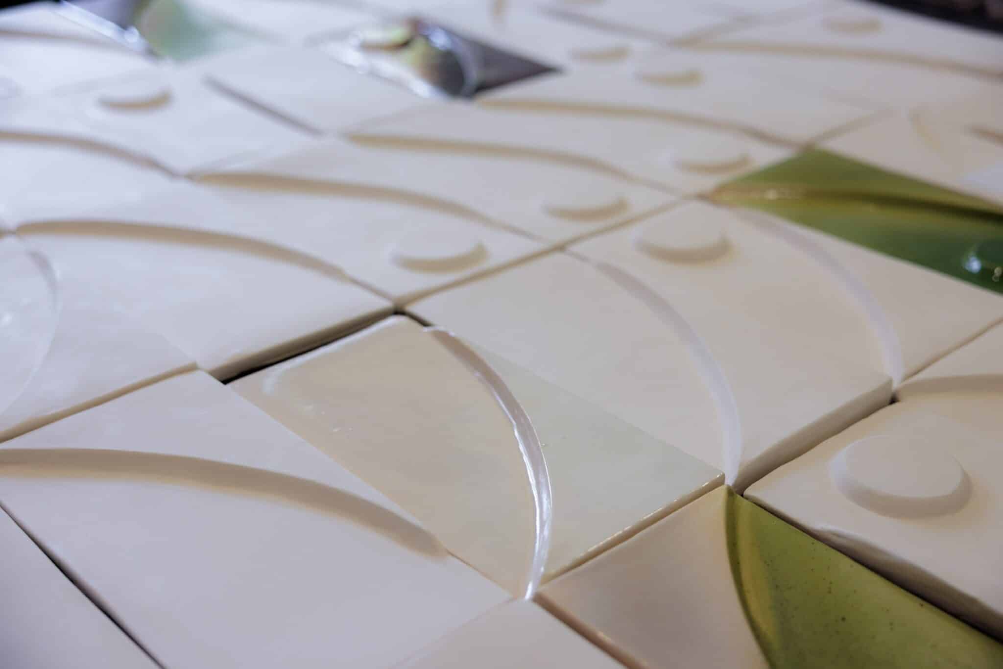 Każdy element mozaiki powstaje ręcznie: od przygotowania masy ceramicznej, przez odlewanie i wypalanie płytek, po ich precyzyjne szkliwienie i ponowne wypalanie, które nadaje barwom głębi i subtelnego połysku. Następnie artystka układa je niczym puzzle, dbając o harmonię całej kompozycji. Dzięki temu mozaika nie jest powtarzalnym wzorem produkowanym seryjnie, ale unikatowym dziełem sztuki, w którym każda płytka różni się od pozostałych drobnym detalem.